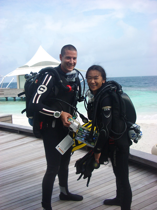 Rebreather ーセミクローズド・サーキットー とSeeDooに挑戦 コメントを残す 新しいものに挑戦中、このリゾートでできるアクティビティはみんな試してみないとね。 これは結構浮力の調整が普通のダイビングと違います。 息を吐くと浮く、というか吸っても吐いてもあまり浮力が変わらずに沈めない。 鼻から息吐いてやっと沈めた。 SeaDooは手軽に楽しめるスクータースノーケリングにもいいけど、 なんだかすぐに壊れそうな感じの作りだなぁ。 モルディブは大物はたくさんいますがウミウシは少ないですね、と言いながら見つけたのがこちら。 共有: Facebook で共有するにはクリックしてください (新しいウィンドウで開きます) Facebook クリックして X で共有 (新しいウィンドウで開きます) X いいね 読み込み中…