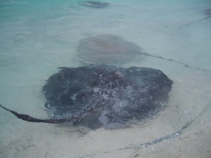 時々ハウスリーフでダイビングすると小さめなマダラトビエイに出会うのでここら辺で育っているのかも知れませんね。ココのラグーンは大きめでちょっと深めなので赤ちゃんが育つにはいい環境なのかも知れません。