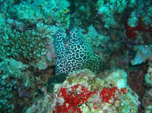 今日はさらにゲストがハニカムモレィ(honeycomb moray)を見つけて教えてくれました。