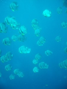 いつも2匹のホワイトチップ・シャーク(ネムリブカ)そしてナンヨウツバメウオの群れが居ます。
