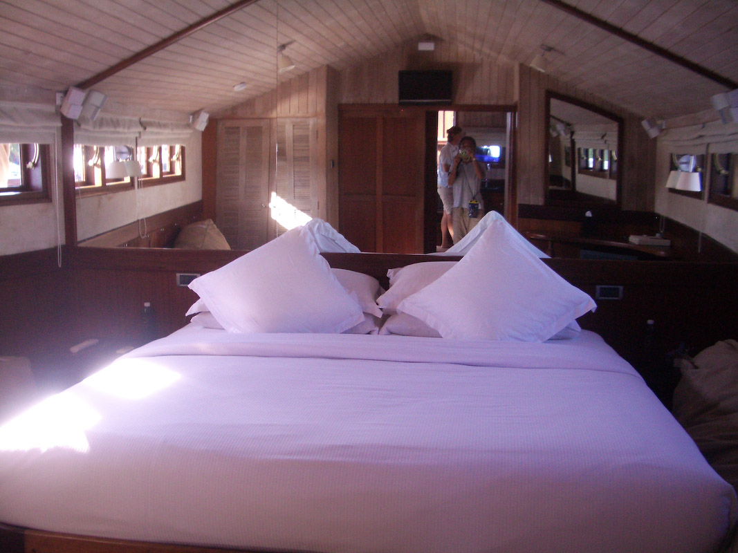 ベットルームも有りシャワールームもきれい、そしてゆったりくつろげるスペースがボートの前にあるのでゲストは気に入ってくれています。(あっ、でもベッドで寝てる人は居ませんが)