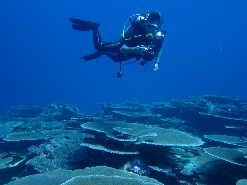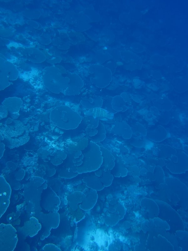 ここは、チャンネルのすぐ近くで、大きなテーブル珊瑚がぎっしり広がっているんです。