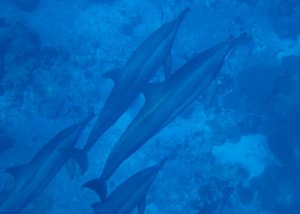 ダイビング中、イルカの声が聞こえていたんですが姿は見えず、ダイビング終わってみたら先に浮上したダイバーたちがイルカを見つけて一緒にスノーケルしていました。