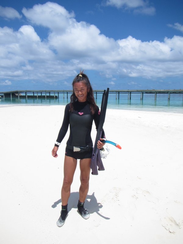 既にフリーダイビング用のフィン持ってるこの子はボートキャプテン