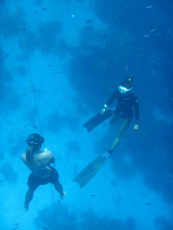 彼女はちょっとナーバス気味に見受けられましたが、5メートルくらいまで潜れました。