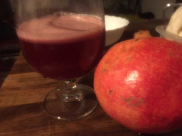 まず始めに食べようと思っていた、ザクロ、一粒一粒丁寧に房から取ってボールに入れて小さな粒を口に入れて2-3粒食べてみたら