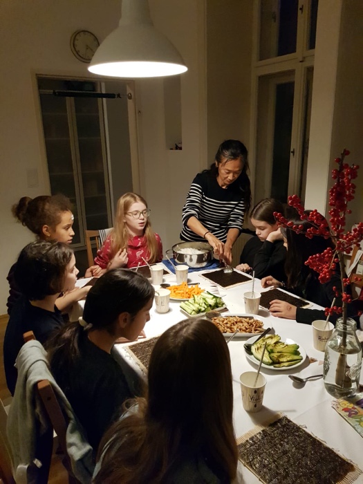 子供たちは9人!巻き寿司の材料の準備をしてもらい、お米の炊き方を見せてから