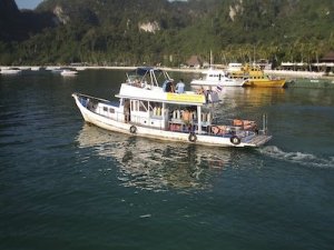 ピピ島はトンサイ・ベイに大きなフェリーが到着し、そのビーチに沿って沢山のボートが、船着き場に向かって立つと右側にロングテール、左側にスピードボートというふうに停泊しています。