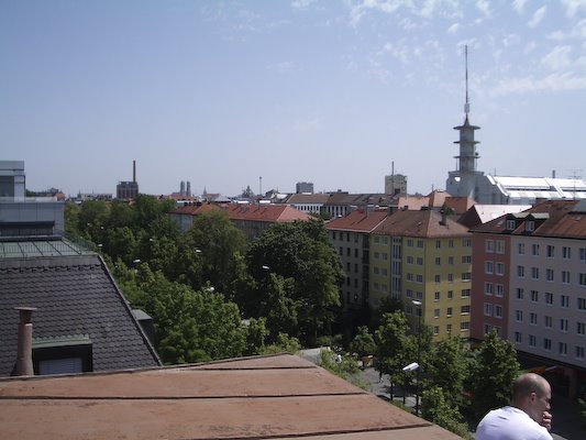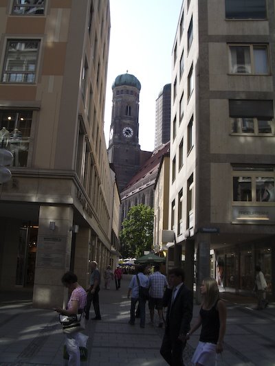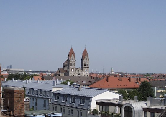 とんがった屋根の教会は近所のBennokirche、遠くに見える丸い屋根の教会は街の中心にあるFrauen kirche、今2つそびえている塔の片方は補修工事中。