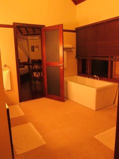 バスルームは外です。広くてシャワーは二つバスタブは一つでした。