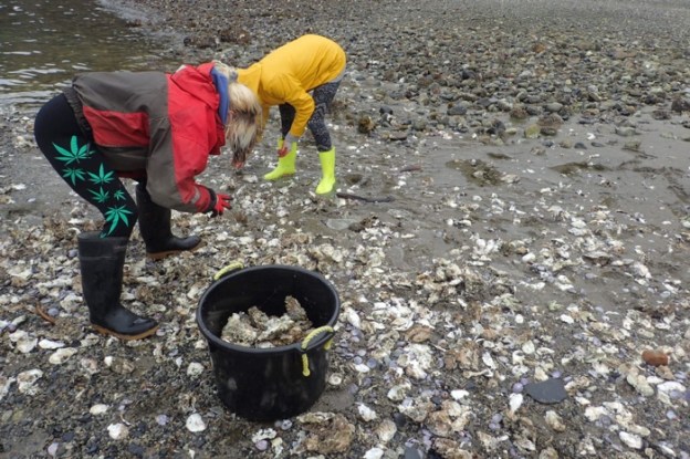 干潮時に浅瀬のビーチで潮干狩りにいくと、天然の牡蠣がわんさか!