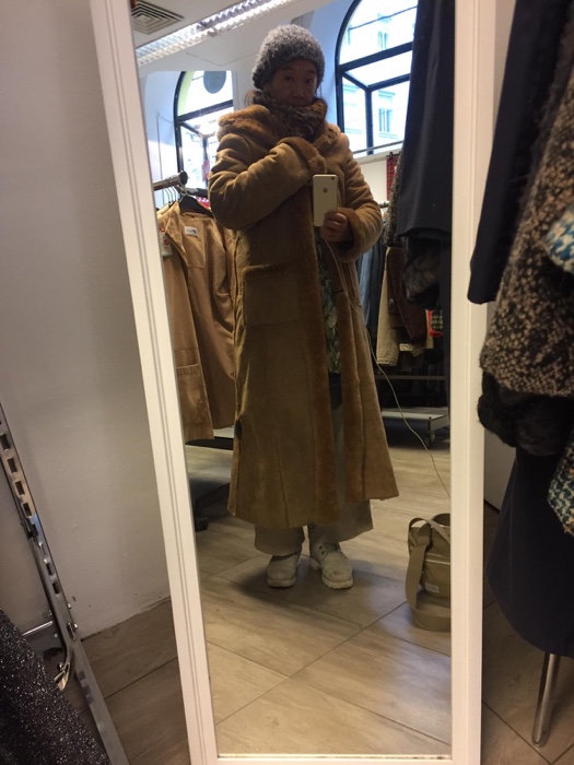 それに似たものを見つけ、手に取った途端おばちゃんが10€だよ、と言ってきて!着てみたけど、姿見が無くて、よくわからない、ちょっと見劣りするけど安さと暖かさに妥協してしまった私。