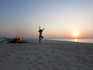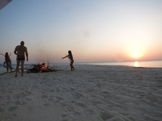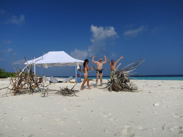 懐かしい写真がたくさん出てきたのでここにアップしてみようかと思います。すでに2年前の写真、私の誕生日に無人島でバーベキューパーティーをした時のもの。大男3人と私という組み合わせですが、一人はこの当時のロビンソンのGM、もう一人はF&Bのマネージャー、そして残る一人はアドミンダイレクター(経理部長)。