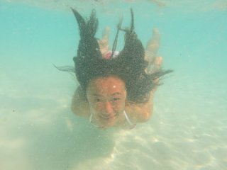 島の周りを一周してみたら途中から海に入らないと通れないところもあり、濡れながらもスタート地点に戻ると誰もいない、、、そしたら後ろから私の後をついてきて