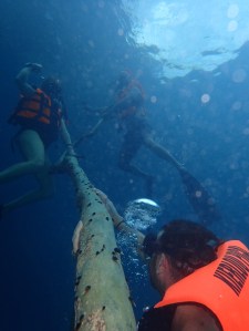 でも桟橋周辺には油が浮いていて濁っているので、ここで獲れた牡蠣は食べられないかもね、と言っていました。