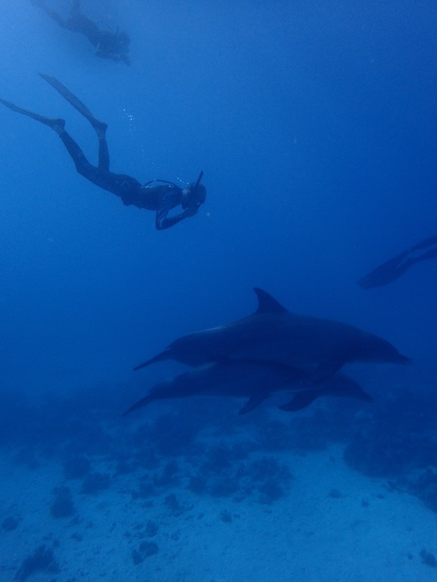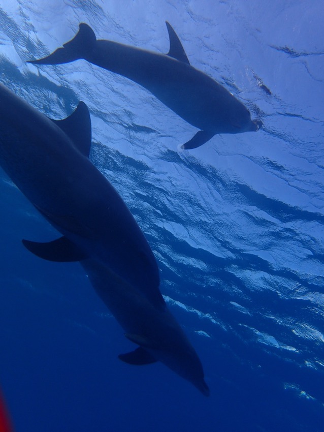 続々と他の船も到着、とにかく海に入ってイルカの群れに近寄ってみると