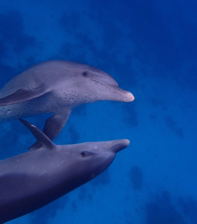 心なしか私の泳ぐスピードに合わせてくれているような? (水面でモノフィンで泳ぐと結構大変です) 目を開けてこちらをチラッと見てまた目を瞑って泳ぎます。