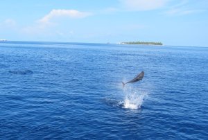 子供サイズのイルカも居て多分お母さんとお父さんと一緒に泳いでいて、でもちょっと興味ありげに私たちの方に向かって泳いで来たりして。