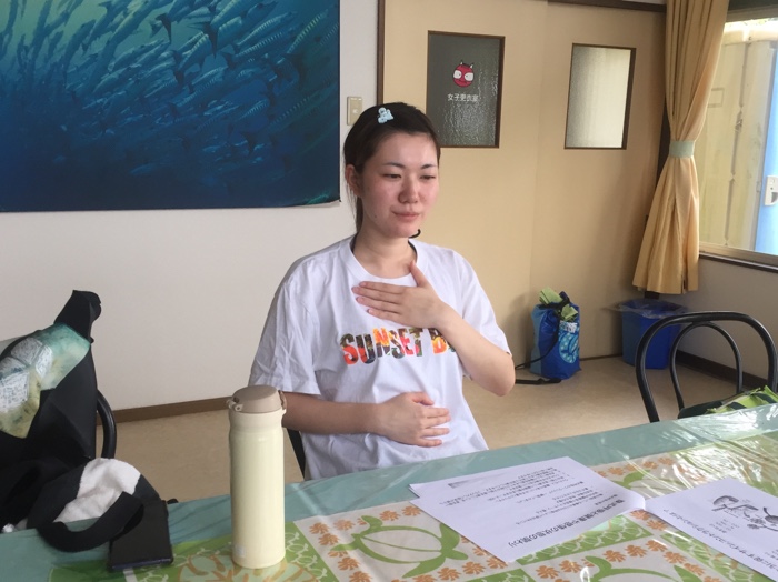 私達が海に入るとお母さんと子供のクジラがピタッとくっついて泳いでいました…お母さん12-3m 子供は3mくらい(子供小さい) です。私のカメラは不調でピント合わず… (^^;;