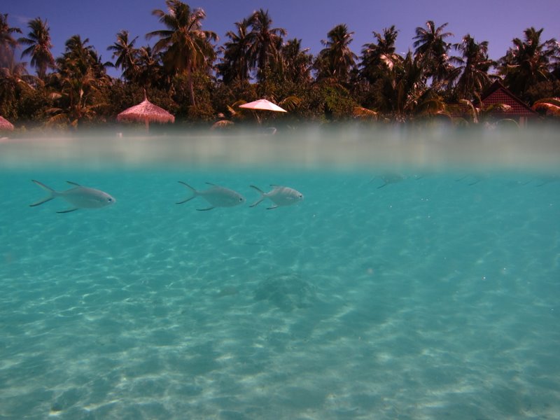 水温は28度から30度くらいです。 今日はピカピカに晴れています。