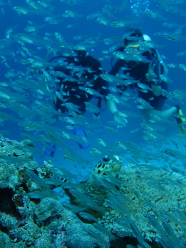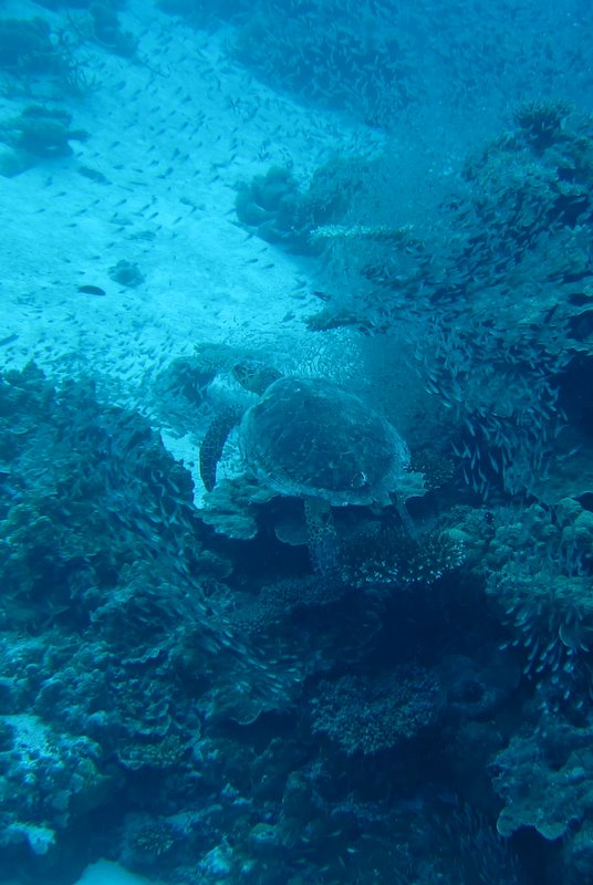 ウミガメ(タイマイ)が20m付近を泳いでいました。