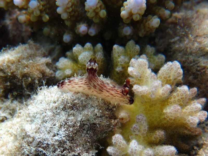 ハウスリーフでディープダイブ コメントを残す Porcupine ray 昨日はハウスリーフでディープダイビングのトレーニングをしました。 その時につけたエイ、ポキュパインレイ です。 背中やシッポにたくさん刺があるのでそう呼ばれています。 これは結構大きかったですよ。 シッポがちぎれて短くなってしまっていますがこのシッポにもとげとげがたくさんあります。 Nudibranch それとウミウシ、これは今まであまり見た事ないタイプでした。 小さめで2cmくらいの大きさでした。