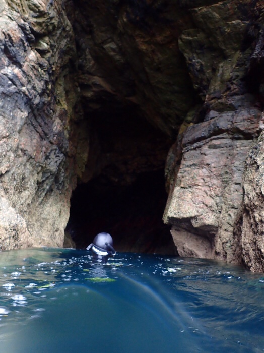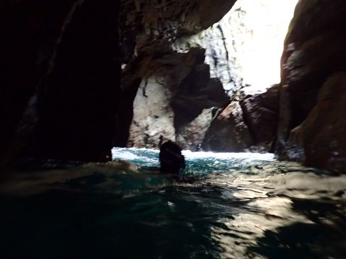私達が海に入るとお母さんと子供のクジラがピタッとくっついて泳いでいました…お母さん12-3m 子供は3mくらい(子供小さい) です。私のカメラは不調でピント合わず… (^^;;