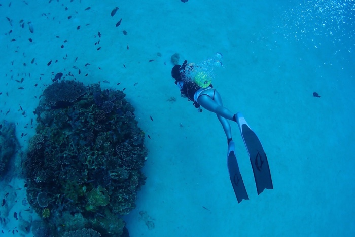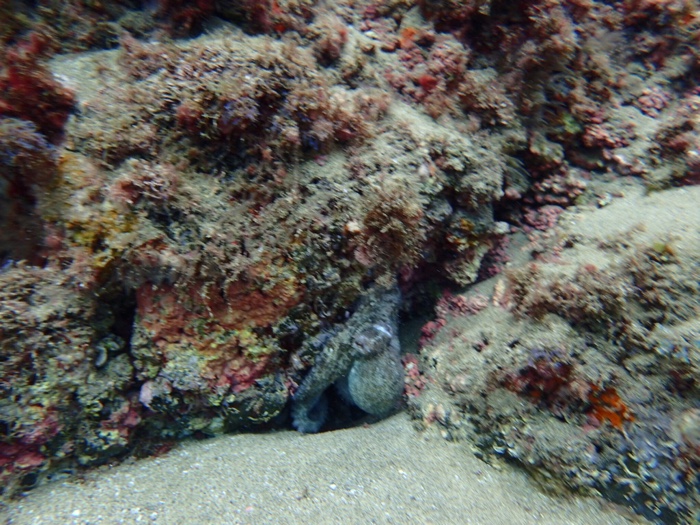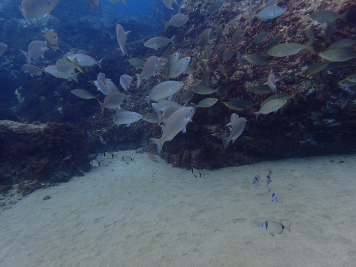 ボートの横には来て逃げませんが、人が入ると深く潜ってしまうので3-4回泳いだ後は場所を変えて、沈没船でスノーケリングを楽しみました。